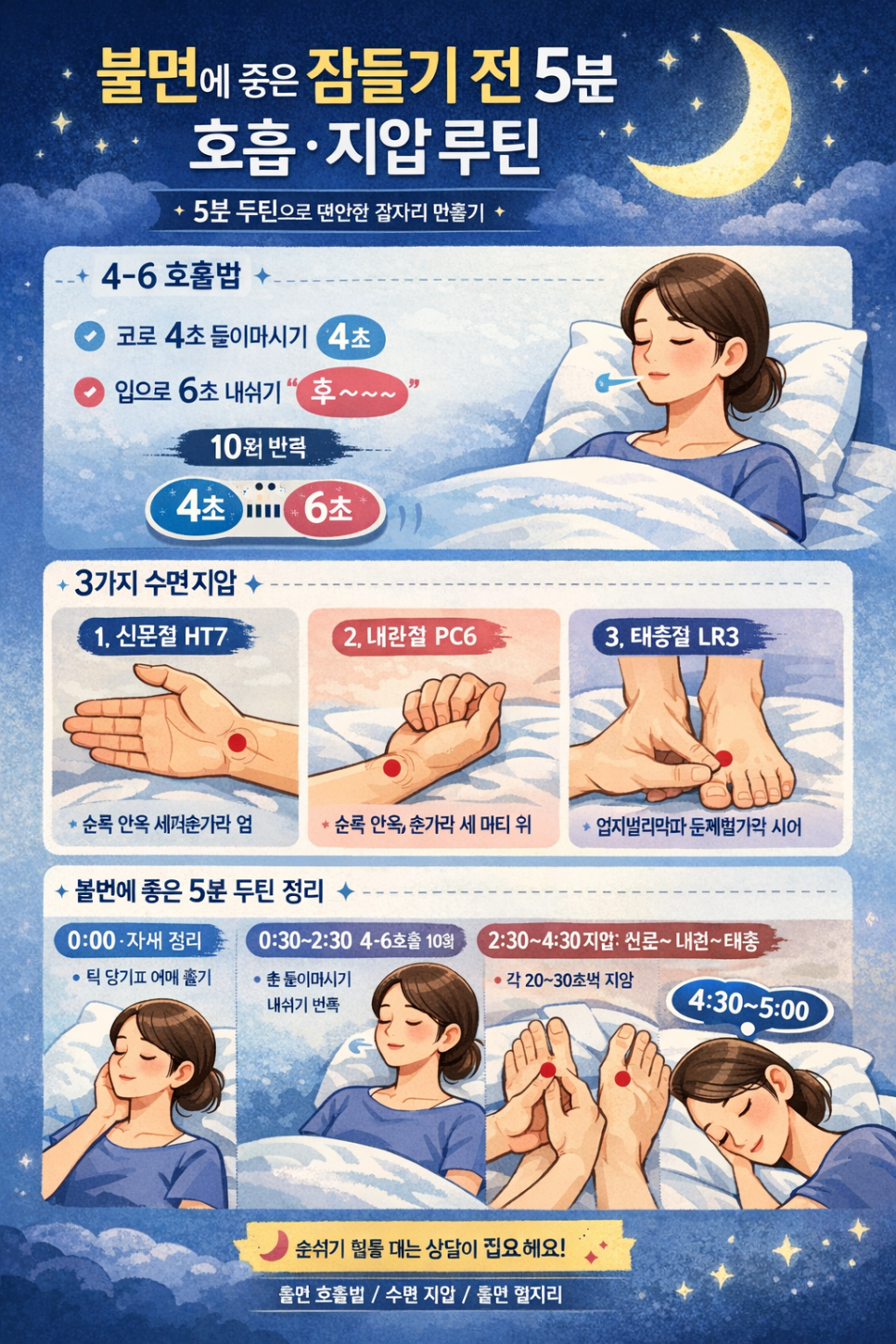불면증 잠들기 전 호흡 지압.